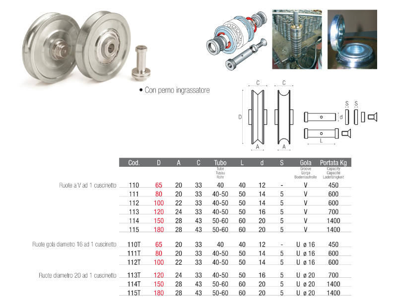 Wheel with lubricating pin, Brevetti Adem. Made of high quality steel. The grease pin facilitates internal lubrication and reduces wear. Wheel diameter of various sizes from 65 mm to 180 mm.