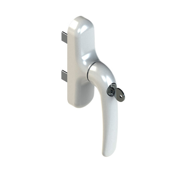 Giesse Prima Key cremone bolt, window handle with wing movement. Ambidextrous version with handle lockable by key.