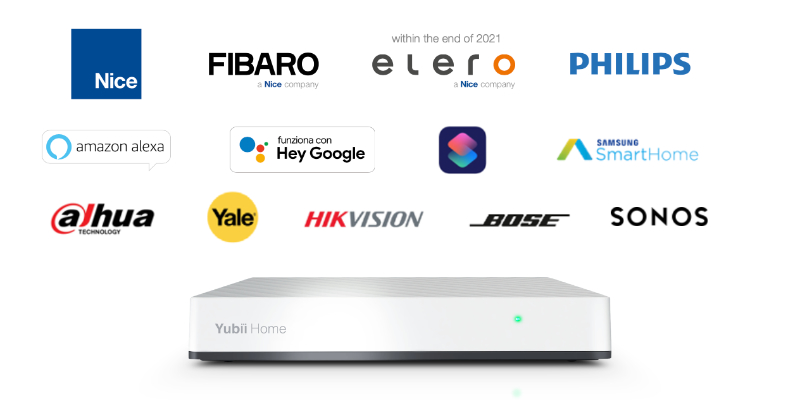 Yubii Home is the gateway that connects Nice, FIBARO and elero technologies, and much more: it is open to the integration of third-party devices thanks to the support of an IP camera, its 5 plug-ins and compatibility protocols Z-Wave and WiFi.