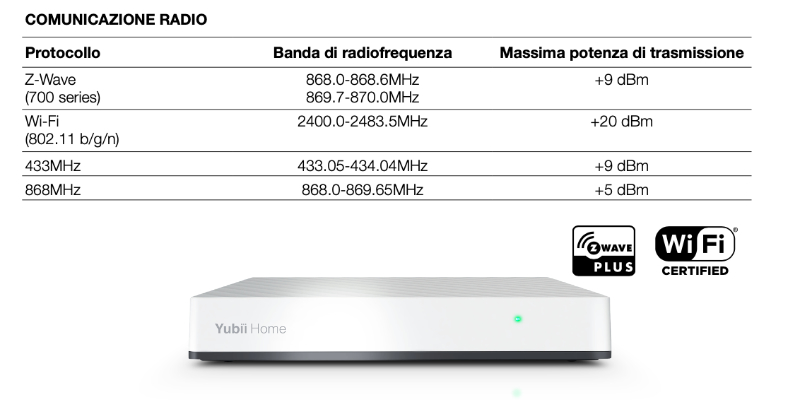 Specifiche tecniche Gateway Yubii Home - Nice Fibaro elero comunicazione radio